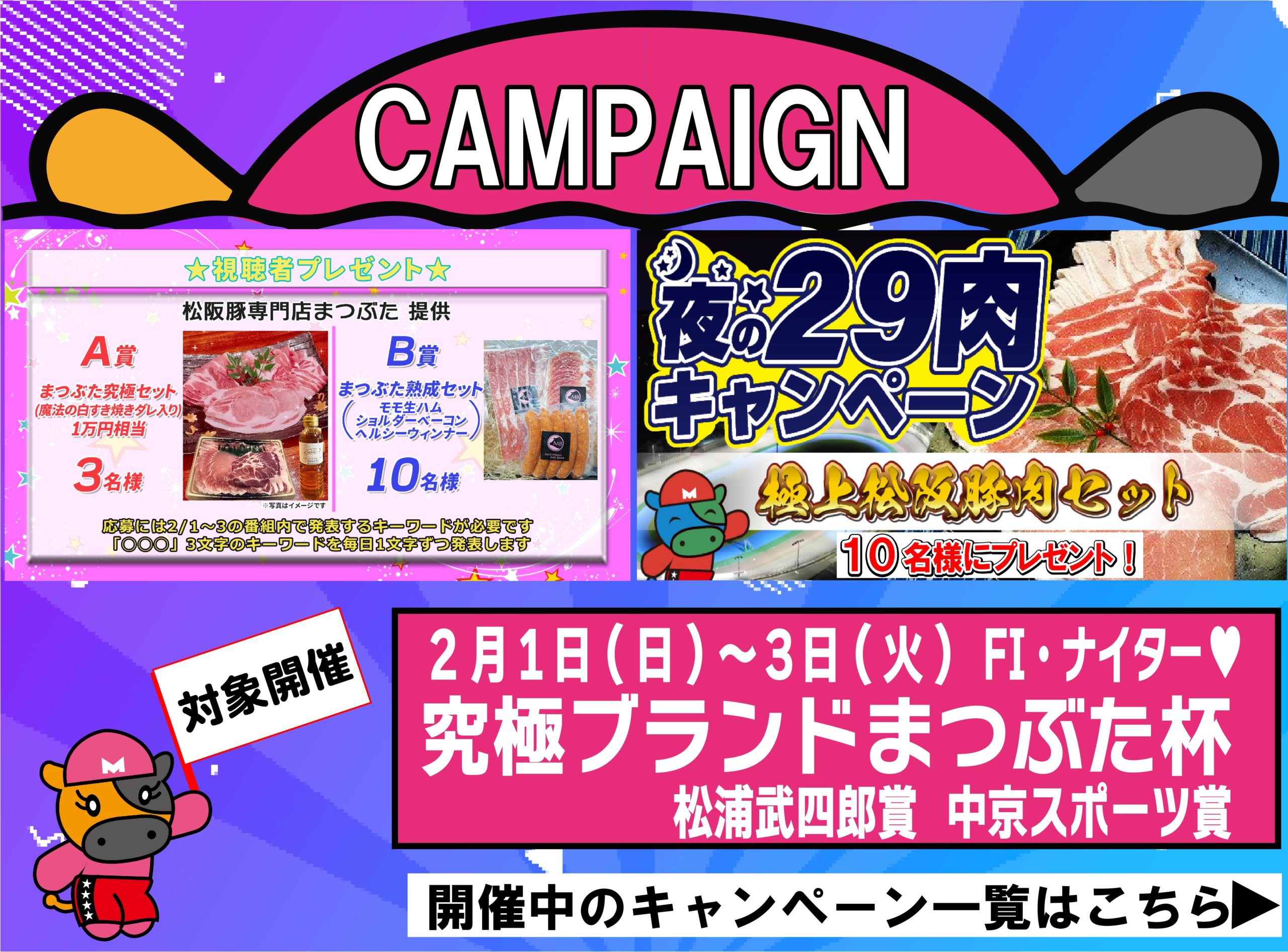 2月1日(日)~3日(火)松阪FIナイター♥ 究極ブランドまつぶた杯 松浦武四郎賞 中京スポーツ賞開催のお知らせ