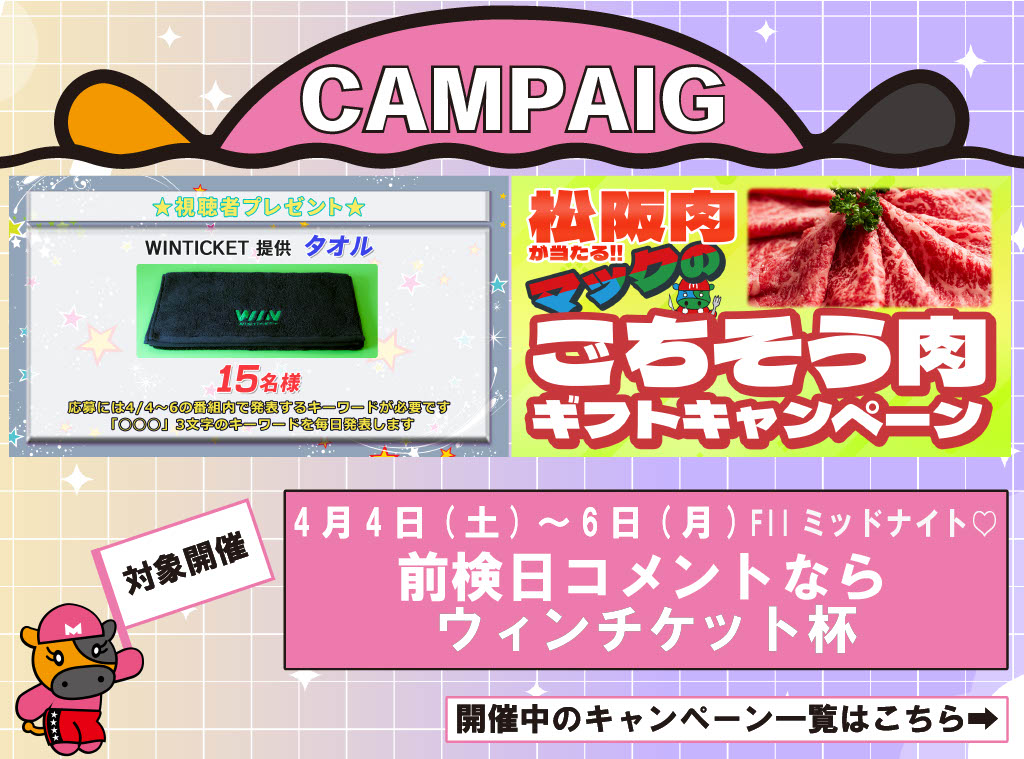 4月4日(土)~6日(月)松阪FIIミッドナイト/ガールズ 「前検日コメントならウィンチケット杯」開催のお知らせ