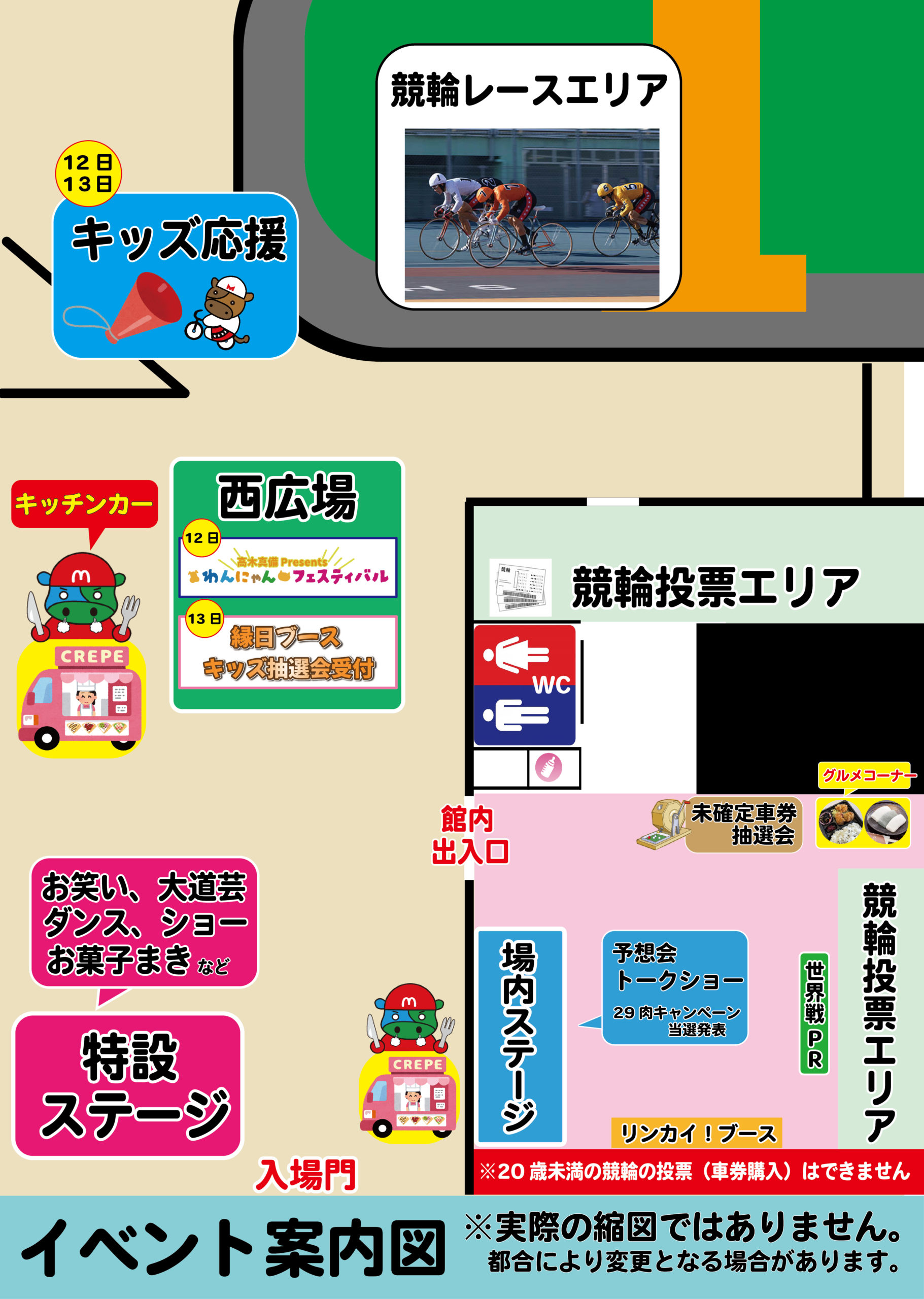 ・お菓子まきやキャラクターステージは、お子様向けイベントとなります。お子様優先でお楽しみください。