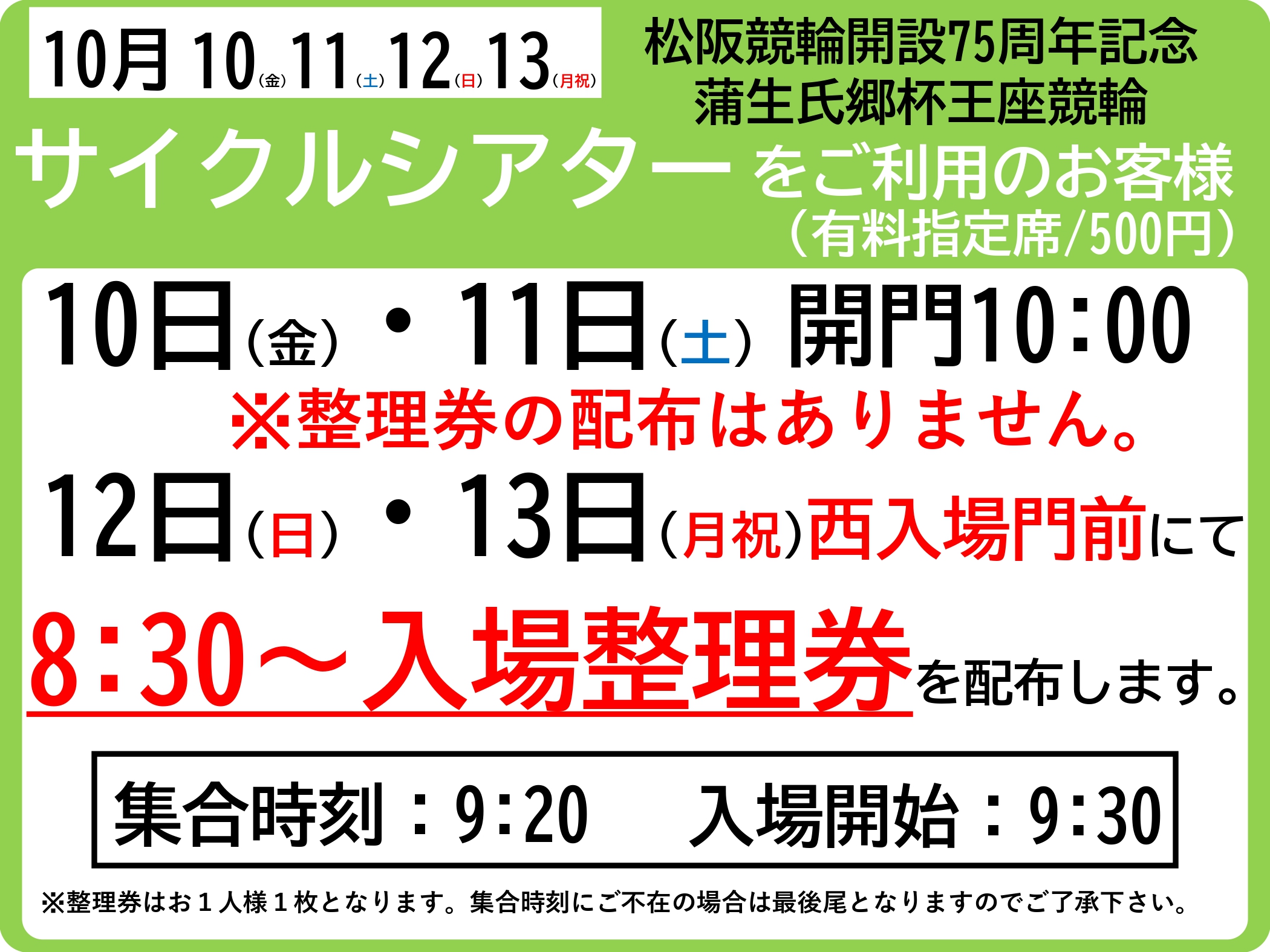 ・11日、12日、13日は多くのお客様の来場が予想されます。
